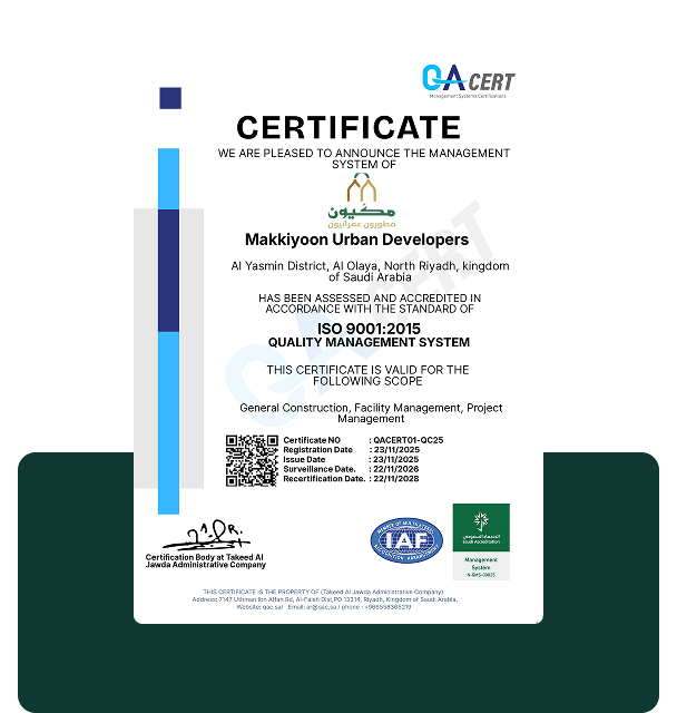 نؤمن أن العمران هو حياة تُثري جوهر الإنسان. ومن هذا الإيمان العميق، تنطلق مكيون لتقدم رسالةً عمرانية تتجاوزُ المألوف، وتُصمم مجتمعات متكاملة تُدار بعقولٍ مبدعة، وتُنفذ مشاريع تحمل بصمة الأصالة السكنية.